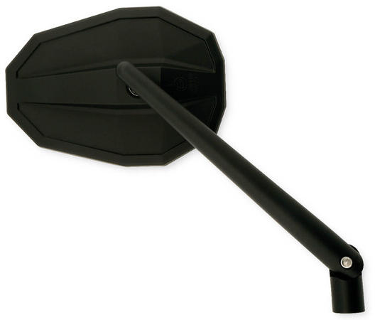 A visszapillantó tükör háza műanyagból készült, és egy korrózióálló rozsdamentes acél gömbcsukló biztosítja a könnyű tükör precíz beállítását a divatos kialakításban. A tükörfejet egy alumínium kar tartja, amely klasszikus módon a kormányhoz van rögzítve. A kormányhoz való csatlakozás egy adapteren keresztül történik (M10x1.25), így a legtöbb piacon lévő modellhez alkalmas. Yamaha modellekhez bal menetes adapter is tartozik. Használható bal és jobb oldalon is.