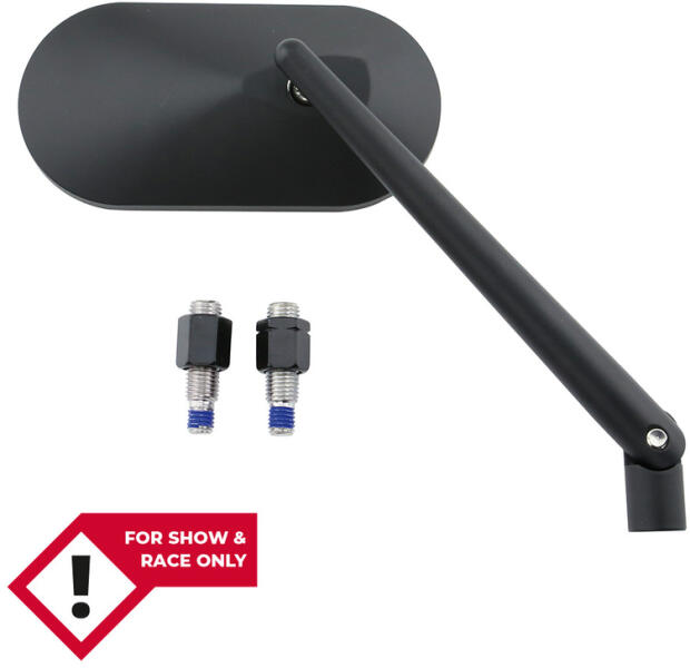 Klasszikus kormánytükör ovális fejjel, alumíniumból. A tükörkar csuklója további beállítási lehetőségeket kínál a legjobb hátsó kilátás érdekében.